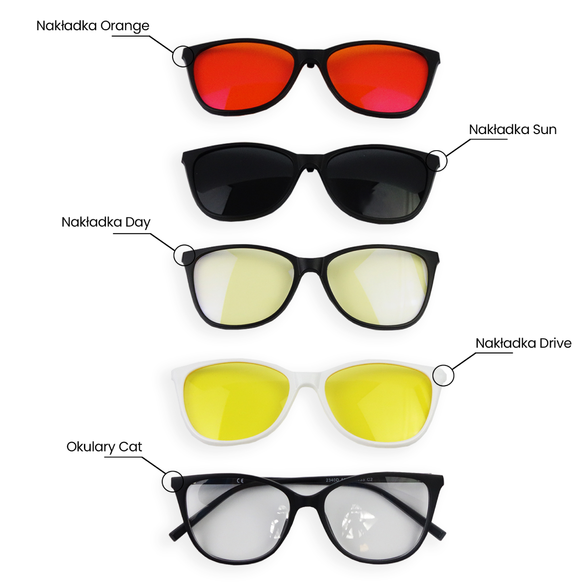 W oprawce Cat osadzimy szkła korekcyjne dostosowane do Twojej wady wzroku oraz dołączymy 4 magnetyczne nakładki!