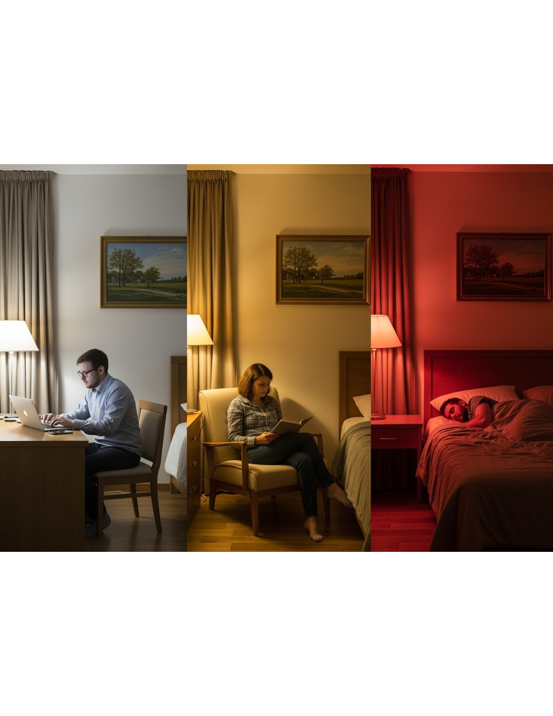 Ciepłe, przyjemne światło z minimalną ilością niebieskiego widma, do wieczornych aktywności – czytania, oglądania filmów czy korzystania z komputera. Chroni oczy, poprawia nastrój i pozwala wyciszyć się przed snem.