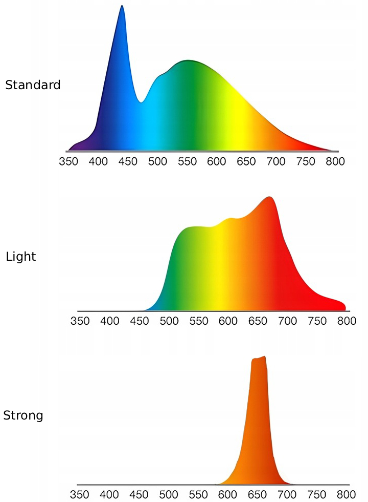 ✅ Tryb Strong (czerwony): 2–3 godziny przed snem i w nocy – dla spokojnego snu i regeneracji.