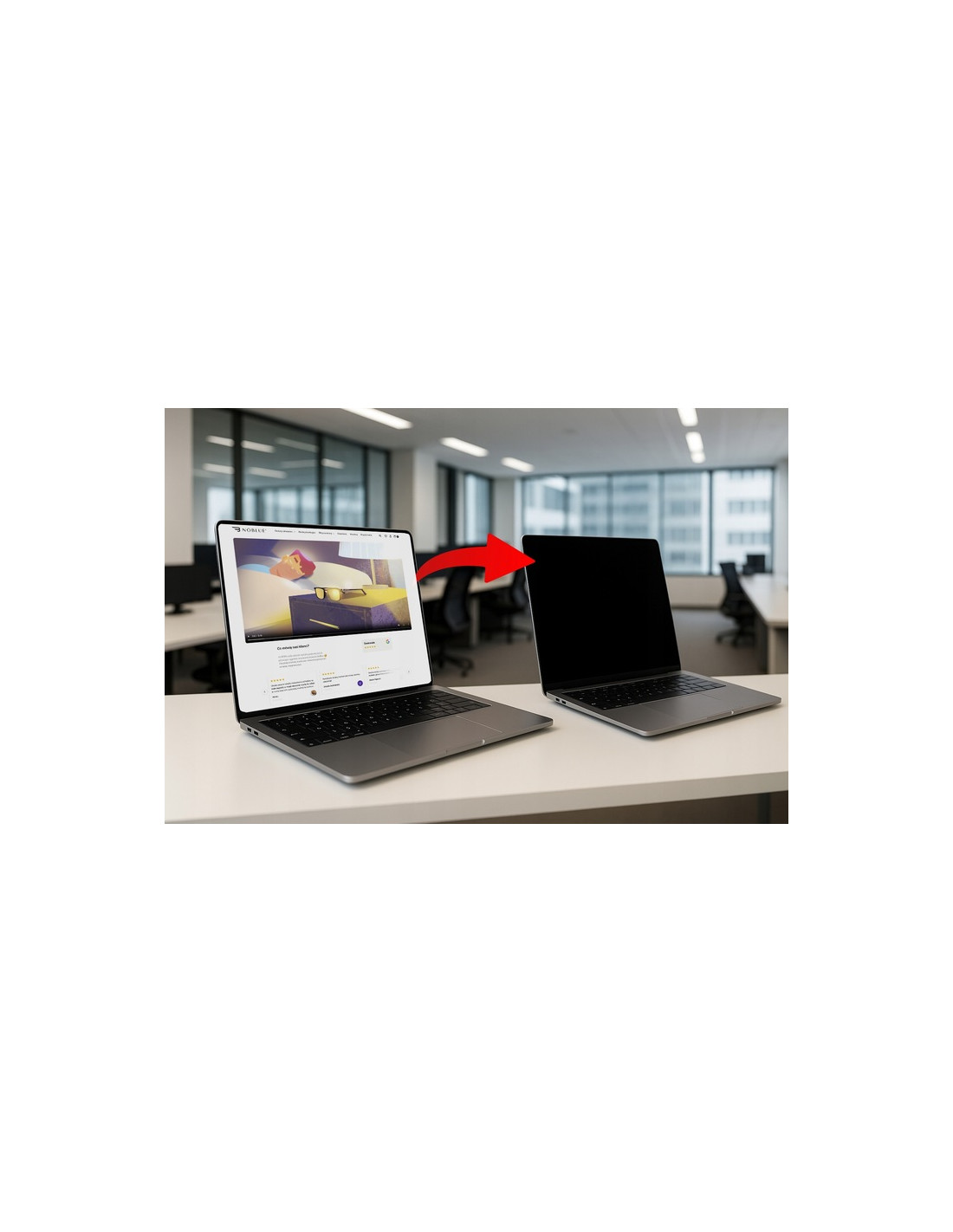 Magnetyczny filtr prywatyzujący NoBlue to Twój codzienny komfort i bezpieczeństwo pracy. Zabezpiecza przed niechcianymi spojrzeniami, chroni dane zgodnie z RODO i dodatkowo blokuje szkodliwe światło UV.