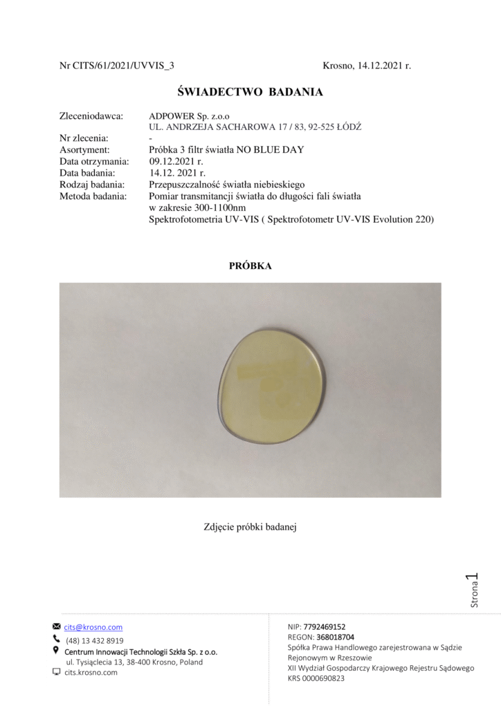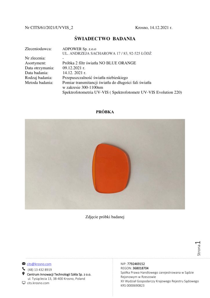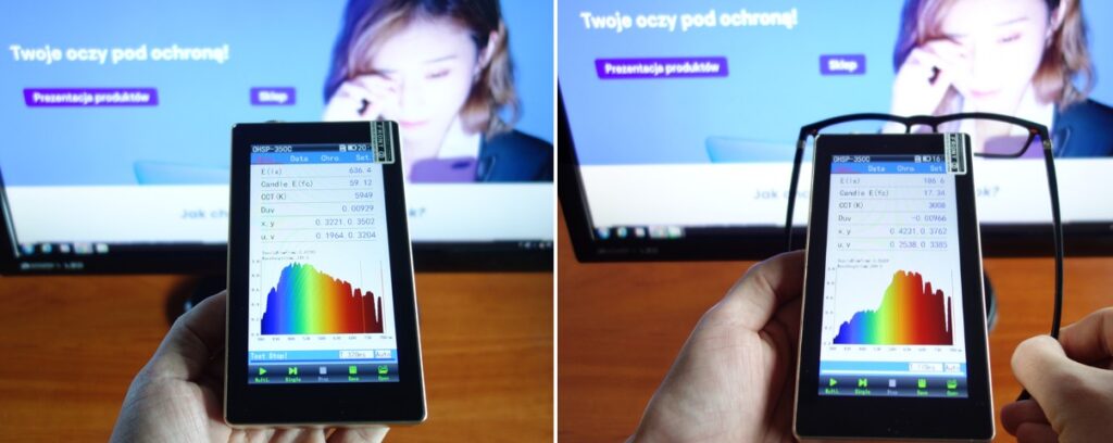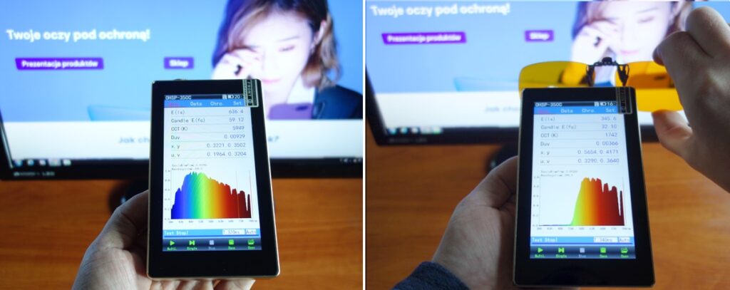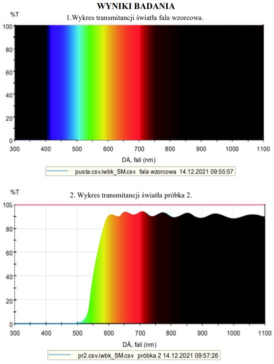 Każdą partię okularów dodatkowo sprawdzamy naszym spektrometrem jeszcze przed wysyłką do Ciebie. Dzięki temu masz pewność, że dostajesz produkt o potwierdzonej skuteczności i możesz liczyć na podwójną satysfakcję z użytkowania.